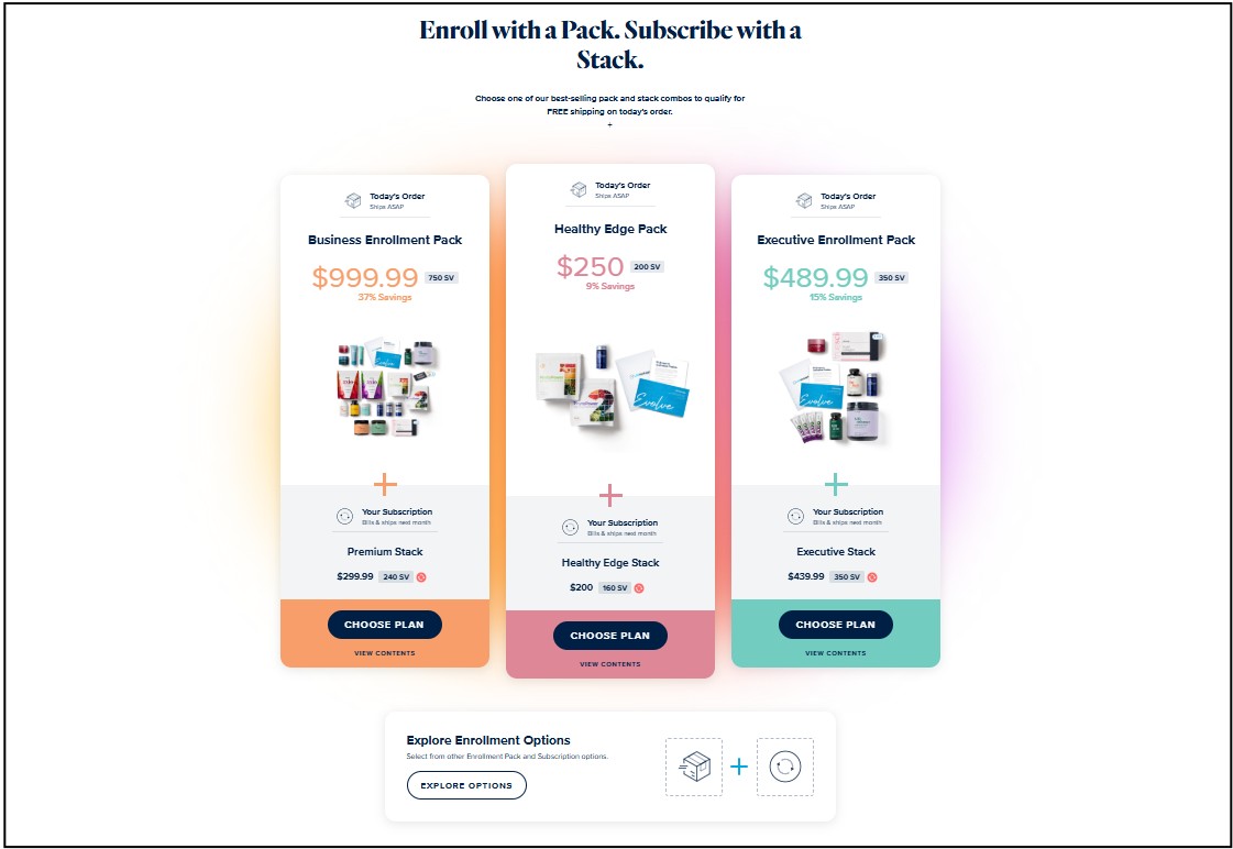 Packs range in price from $250-$999 plus tax. Select one that fits your budget and contains the products you are most interested in using.