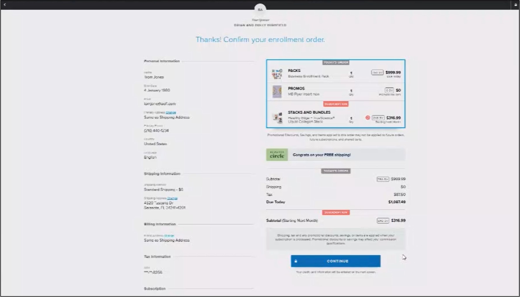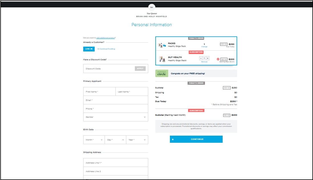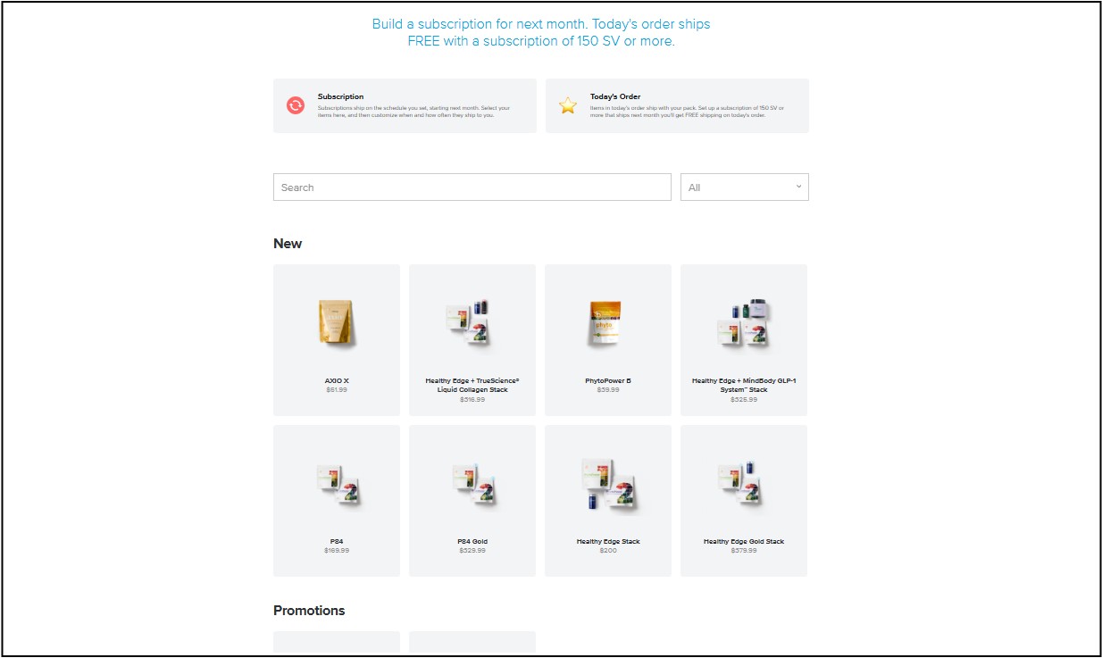 Select a subscription order for yourself. This order ships the following month. Select which products you wish to use.